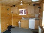 Treated 2" x 6" insulated floor with carpet Knotty pine interior 6 holes with hole covers 30,000 BTU empire heater 4- gas LP lights 4 - 12 volt lights over holes 12 volt ceiling fan wired for 12 volt and 110 am/fm/cd radio queen size and twin bed enclosed bathroom with mirror steel siding steel runners plywood with steel covered roof vaulted ceiling 4 burner stove with oven and broiler lots of cupboard and storage space 2-100 pound LP tanks with dual automatic regulator Bay window with Custom blinds Only used 1 year - currently on Mille Lacs Lake at Hunters Point Resort