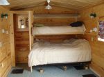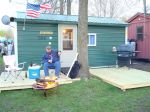 Treated 2" x 6" insulated floor with carpet Knotty pine interior 6 holes with hole covers 30,000 BTU empire heater 4- gas LP lights 4 - 12 volt lights over holes 12 volt ceiling fan wired for 12 volt and 110 am/fm/cd radio queen size and twin bed enclosed bathroom with mirror steel siding steel runners plywood with steel covered roof vaulted ceiling 4 burner stove with oven and broiler lots of cupboard and storage space 2-100 pound LP tanks with dual automatic regulator Bay window with Custom blinds Only used 1 year - currently on Mille Lacs Lake at Hunters Point Resort