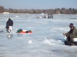 we snapped a few pictures of going on the lake, the ice of water here and there, -nothing serious-, shore line entry had a few ruts on the ice id stay away from;- other than that 2 ft of ice;- Our first Victims were spotted right away;;