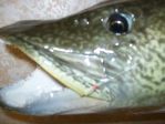 By the way, the rod is the one I brought him in with. 8# Berkeley Trilene and the perch Demon that's in his mouth. Funniest fish I ever caught. Jody and I still are laughin'.