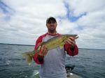 This past week the key to putting fish in the boat for this angler has been fishing clean water. Over the past week I have noticed a lot of bait, along with bugs hatching in the water column. Looking for cleaner water has been the key to catching more fish. The mud flats have also been the best option as far as locations go. Fishing the top edge or along the break has been a good starting point in targeting your fish. The best depths have been from 22-26 fow. Watch your locator for fish and save some time with only dropping your line down if you have some fish on the locator. The fish are moving and can be in one area and gone on the next pass. Long lindy rig’s tipped with large and jumbo leeches have been working the best. The crawler spinner bite has not been that good for this angler. I find that I’m putting more fish in the boat with leeches on rigs these days. The action around the Red Door Resort has been mixed. Many July anglers are stuck on what has worked in the past, when it might be better to change to another presentation. This summer has been one much different than others in the past. I normally would have been fishing crawlers and spinners much more than the lindy rig’s. I’m always prepared to do whatever it takes, but pulling lindy rigs has been the ticket. Water temperatures have reached the upper 70's and I have seen 80 on a few occasions.