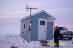 We are selling our 8' x 20' ice house. (4) Bunks, (8) Holes with Rattle Reels,Cook Stove, Steel Skids, Tin Roof. Orbis Direct Vent LP Heater with (2) 100lb Tanks. (4) electric lights powered from an inverter also has (2) gas lights as well. This is a sturdy well built and well insulated fish house. Also not shown in the pictures, we have added a steel gate at the front door. The ice house is located at Nitti's Hunter's Point Resort dead storage area. $2,450 b.o. Any questions, Please call Steve @ 612-308-0855. or Ken @651-278-9606