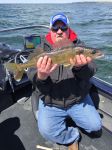 Went out of the North Side by Red Door and fished for 4 hours. Caught 4 missed several (little rusty). 3 of the 4 were over 20" and one 15". Considering wind and cold wasn't too bad. Jig and minnow and rigging with minnow seemed to give us best results.